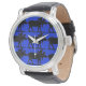 青い背景に黒いムースの王室の繰り返しパターンが表示され、ウォッチ顔に表示される。