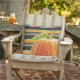 ハッピー秋ヤールカボチャonおもしろいパタストライプーン アウトドアクッション