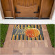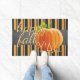 ハッピー秋ヤールパンプキンオレンジグリーンストライプズ ドアマット