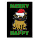かわいい漫画のパグクリスマスカード。グリーンレタリング。