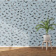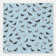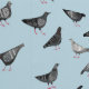 明るい青の緑の背景の上を鳩が歩き回っていた。オリジナルアートby Nic Squirrell.