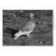 草の上に立っている赤い鳩の白黒の写真。ウェールズのカーディフ、ロアースパーク湖の近くに撮影。