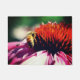 可愛忙しい紫色のエキナセアの円錐花序の上に小さな蜂蜜の蜂蜜のクローズアップ。自然撮影スーザン。