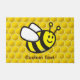 シームレス飛んでいるなミツバチの巣箱の背景に笑顔のミツバチの漫画。