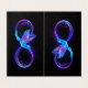 黒白熱[赤熱]光を放つ色の背景に飛んでいるは、明るい青いハミングバードと紫色の無限大のシンボル。ネオン。