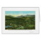 ニューヨークのエリザベスタウン – Aerial View of City with Hurgan Mountain - Elizabethtown, NYは1927年に設立された。この画像はニューヨーク州エリザベスタウンの風景を描いている。