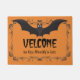 この設計特微は点滴注入のフォントの単語"Velcome"の拡大された翼が付いているこうもり、すべてのあなたの訪問者のくすくす笑いにこのハロウィンを得ます。 あなたの姓と個人化なるべき簡単。