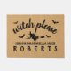 秋のハロウィンのクラシックで、エレガントな玄関マット-こうもり、飛んでいるな魔法使いおよびあなたの姓の"魔法使い"の文字