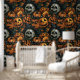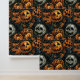 イラストレーションのパターンのハロウィーンパンプキンのダークカラーのスケルトン壁紙と。この洗練されたデザインモダンは、季節の魅力と時代を超越したスタイルのtouchを飾るので、エレガンスの本質を受け入れる。休日のお祝いに洗練されたダッシュを追加するのに最適。