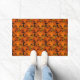 黒い背景色とハロウィーンのカボチャ幽霊のよく出るのプリントで示されたドアマット。こカスタマイズこのマットや買そのまま。
