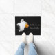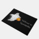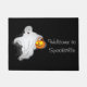 黒い背景とハロウィーンの幽霊プリントで表示されるドアマット。こカスタマイズこのマットや買そのまま。