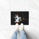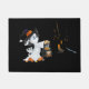 黒い背景と可愛いハロウィーンの幽霊プリントで示されたドアマット。こカスタマイズこのマットや買そのまま。
