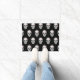 黒い背景色とハロウィーンのスカルのプリントで表示さ幽霊のよく出るれるドアマット。こカスタマイズこのマットや買そのまま。