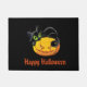 黒い背景とハロウィーンのカボチャと黒い猫のプリントで示されたドアマット。こカスタマイズこのマットや買そのまま。