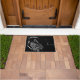 黒い背景色とハロウィーンの家と厳粛な刈り取り幽霊のよく出るプリントで示されたドアマット。こカスタマイズこのマットや買そのまま。