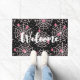 白いクモとピンクのクモと白いクモのシームレスなパターンのウェルカムドアマット。
