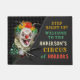 上がれ!怖いサーカスをテーマにしたおもしろいのハロウィーンハウスのパーティーをこ幽霊のよく出るの気味の悪いピエロのドアマットで投げる顔熱狂するのピエロが角を曲のまわりにげ、舌が突き出て、角が頭に突き出て、野生のカラフルの髪が揺れ、不気味な爪が伸びていた。簡単テンプレートを使用して、ファミリ名/サーカス名を追加します。クリック残りの文字を変更する場合は、「さらもしに/カスタマイズ」します。 一致するパーティの招待状を参照:https://www.zazzle.com/halloween_creepy_clown_funny_adult_scary_party_invitation-256568361817845998
