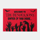 不気味な入り口をこのハロウィーンの不気味なゾンビの手とこうもりと文字を持つこの赤いドームと一緒に作成し、あえてあなたもしに入力する。すべての文字は、独自のメッセージとファミリ名を追加するためにカスタマイズ可能