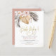 素朴で赤んエレガント坊のシャワーデザインと金ゴールドスモダンクリプトレタリングと水色フローラブーケ。緑はトップコーナーに現れ離れ、乾燥したパームの葉、ススキ、パームの葉、蘭、ピンクの花々が含まれている。「こんにちはベビー!」は、シックな書道で下に表示され、下のイベント詳細はタイポグラフィでシンプルす。右下の隅にはデザインにバランスフェイクを取り与え、少し余分な輝きを追加する金ゴールドグリッターがある!白いタイル模様のボヘミアの埃っぽいピンク色に逆のカード。オンラインで編集可能、提供されたテンプレートボックスの文言を変更する。デザイン独自のプリントとパーソナライズされた招待状!この砂漠の緑のテーマは、春、夏、秋のシャワーに最適である。Zazzleの予算選択の一部として、このシートは標準の招待状サイズまたは紙品質ではない。このデザインもしは、私たちの店で見つけることができる招待カード上で、またはあなたの選択の製品に転送するためにZazzle Make Machineを使用して使用する。赤感じちゃんシャワーのゲーム、レシピカード、サンキューカード、シンボルや象徴、インサート、その他のアイディアに合わせて私にメッセージを無料でカスタム – 私は幸せにな救済る!