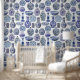 青と白の色合いのハンプトンスタイルジンジャーの壁紙を剥パターン(の模様が)あるがれ、スティック