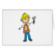 黄色いヘルメットの棒の姿の建設作業員はマグ、エプロン、バッグ、ステッカー、および文字か名前とカスタマイズことができる多くのような棒の姿の建設作業員項目のハンマーを握ります!