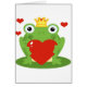 素晴らしい赤いハートを握っている戴冠させたカエル王。