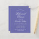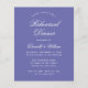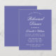 モダンな色合いのバイオレットカラー(2022年のカラーオブザイヤー)を使用したシンプルなリハーサルディナー招待状。背景はバイオレットで、白いテキストが入っている。「リハーサルディナー」や名前は、優雅なカリグラフィーで書かれている。
