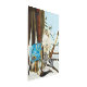 ノルウェーの森の猫は青い竜の木の横に座ってボトルヘルメットの座り込み。彼らのまわりにと一緒に剣とバイキング斧を雪。
