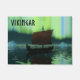 バイキングの長い船の少し様式化されたイメージの夜に北のライトの下に氷のカップルの下で航海し、乗組員の大部分が眠っている。文字読の「VIKINGAR」(バイキング)も登場。