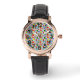 この女性の時計は、赤、緑、青、オレンジ、ライトブルー、黄色、赤の正方形と長方形のグリッドのバウハウスデザインを持っている。