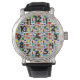 この男性用ウォッチは、四角と長方形が赤、緑、青、オレンジ、明るい青、黄色、赤のグリッドのバウハウスデザインを持っている。