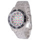 このメンズウォッチは、金ゴールド、ターコイズ、ティール(緑がかった色)、紫、光金ゴールドの三角形を繰り返すバウハウスデザインを持っている。あなたはもしデザインが好きだが、色違うを好む、メッセージ私。