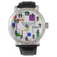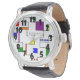 この男性用ウォッチはバウハウスのデザインを持ち、垂直および水平に行き、グリッドに正方形、長方形、三角形、および円を配置したグリッドを作のまわりに成する。あなたはもしデザインが好きだが、色違うを好む、メッセージ私。