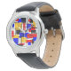 この時計は、白のフィールド上のデザインを横切る黒い線を持つ長方形と正方形のバウハウスデザインを持っている。