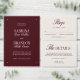 洗練されたセリフと流れるスクリプトタイポグラフィを備えた深いのブルゴーニュな背景で設計されたこのサインは、披露宴の装飾に洗練を加える。結婚式フォーマル、ブドウ園のお祝い、夕べ披露宴、秋と冬のイベントに最適で、一致する招待状、メニュー、座席表、看板と組み合わせると、まとまった表情になる。完全にカスタマイズ可能:特別な日に合わせて名前、日付、およびテーブル番号をカスタマイズ。「サブリナ」結婚式招待状コレクションの一部で、すべての詳細をシームレスで洗練された美意識に合わせてコーディネート結婚できる。このページ後を追のリンクをクリックすると、一致する看板、メニュー、招待状などを表示できます。・このデザインのモックアップはMidjourney AIを使用して作成。