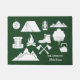 キャンプ場の名前や州を簡単に追加し、キャンプ場のや、キャンプ用のキャビングドアマットを作るためのおみやげや、家族名などの文字を追加して、キャンプ場や屋外の設備を、ハンター用の緑の背景に白く並べて表示します。キャンパークールやキャンパーを愛する人に贈り物をし素晴らします。山やテント、キャンプファイア、ランタン、ハイキングブーツなどのイラストがあります。