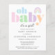 パステルフレンドリーティール(緑がかった色)、ブルー、グリーン、ピンク、紫とオレンジのモダンタイポグラフィ、コーディネート抽象芸術レインボーとスクリプトの「女の子よ!」の「オベビー」を特集したバジェット・ベビー女子シャワーの誘いスタイリッシュ。