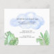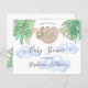 予算かわいい男の赤ちゃんスロスベビーシャワー招待状。このおもしろいの赤ちゃんシャワーの招待は、緑の水の色のジャングルのつるベビーと青い雲で囲まれた枝から甘い笑顔の離れのスロースを特徴とする。反対側はトロピッ飾クの葉、青い雲と詳細な情報のための宇宙です。すべての文字はカスタマイズ可能。オリジナル水彩©ミケーレ・デイヴィス。
