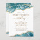 バジェットアゲイトターコイズティール(緑がかった色)ブルーとゴールドフォイルのバースデーパーティ招待状-モダン特別なSweet sixteen(16th)誕生祝いのための美しエレガントさとスクリプトを含む。