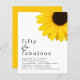 黄色のひまわり50誕生日予算フレンドリーは4.5インチx 5.6インチの代替品。セミグロス110 lbカード素材またはサテン仕上げ80 lbシンナー紙素材。封筒はオプションで追加できる。右上に素朴大きな黄色のひまわり花を持つスタイルで、下にヘッダーが大きく、下に詳細がスタイリッシュ付いている。自分の詳細に文字を簡単にパーソナライズ。