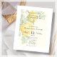 水の色の黄色のバラと緑のかわいらし花を特徴とする美しい最初の聖餐会の招待。簡単の個人用設定の準備完了。