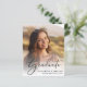 バージエレガントュフレンドリー・ブラック卒業発表とパーティの招待状卒業写真はカードの前面に埋め込まれ、スクリプトに「大学院」と重ねスタイリッシュて、その下に名前と学年と学年を加える。背面に、追加の写真と卒業パーティーの詳細を追加シンプルレタリング白。