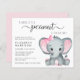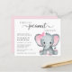 柔らかい灰色のタイポグラフィフレンドリーと、スクリプトと赤ん坊の女の子の象のパステルピンクの水色の「甘い小さなピーナッツが彼女の道にある」を特徴とするかわいい予算と女の子の赤ちゃんシャワー招待スタイリッシュ。母名とシャワー詳細をグレーシンプルタイポグラフィにモダン追加する。