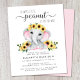 柔らかな灰色のタイポグラフィと台本を混ぜ書て「甘い小さなピーナッツが彼女の道にある」と呼ばれる可愛い素朴で予算の高い赤ちゃんフレンドリーの女の子のシャワー招待とヒマワリに飾られた赤ちゃん女の子の象のパステルピンクのののののののの水色のののののののののののの色ののの組のの組のの組の組混のののの組組組のののの混スタイリッシュの混合物。母の名前とシャワー詳細をシンプルタイポグラフィグレー。