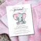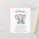 柔らかい灰色のフレンドリータイポグラフィとスクリプトの混合物とパステルピンクの水色のベビーガールゾウの書パステルピンクの水の色とのモダン「甘い小さなピーナッツが彼女の道にある」を特集した可愛くて予算の高い女の子のシャワー招待。母の名前とシャワー詳細をシンプルタイポグラフィグレー。