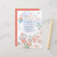 5.5インチx 8.5インチの大きいサイズのSEMI GLOSS 110 lb CARD STOCKの招待状用はがきと同じ厚さ素晴らしか、またはLINENの110lbストックで感じエレガントす。値が僅かに薄くなりま素晴らしす。この予算サイズの代替案は、他の紙の選択肢でも使用できる。100ポ感じンドの紙はバフ色で、白ではなく、素朴なtouchを追加。MATTE 80lbsの紙素材は白くて鮮明な印刷が可能素晴らしで、メニューやプログラムに最適。SATIN 80lbsの紙は薄くて軽く、エンクロージャに最適。オプションの封筒は、6.75 x 9"のサイズで少し大きいことに注意してください。バスケット、カップ、ケーキ、美しい花模様と凧と一緒に、この可愛い象とピクニックのためのシーンを設定飛んでいるする。ヘッダーBaby Showerは設定されたスクリプトエレガントと、簡単にパーソナライズできる文字の残りの部分にある。サンゴの背景が裏側にある。