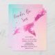 海の上の予算 – ブルーピンクパープルマーメイドベビーガール1st誕生日招待状。
