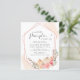 「甘いエレガント小さなパンプキンが彼女の道にある」と予算の赤ん坊の女の子のシャワーの招待書フレンドリーと、ソフトな灰色のタイポグラフィとハートのスワップとスクリプトの混合物と、パステルピンクとサンゴのパンプキンとフローラの水色。母の名前とシャワー詳細を簡単にパーソナライズシンプルグレータイポグラフィ。