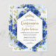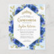 ブルーモダンガーリーフローラ金ゴールドバタフライスパークルグリッターキンセアニラ招待状