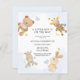 可愛いテディベア、スター、ハーフムーン、パステルの愛のハートクッション、赤面の背景を備えた男の子の赤ちゃんシャワー予算の招待カードの途中にある。上の「パーソナライズ」ボタンクリックを使用して詳細を簡単に追加
